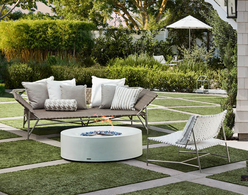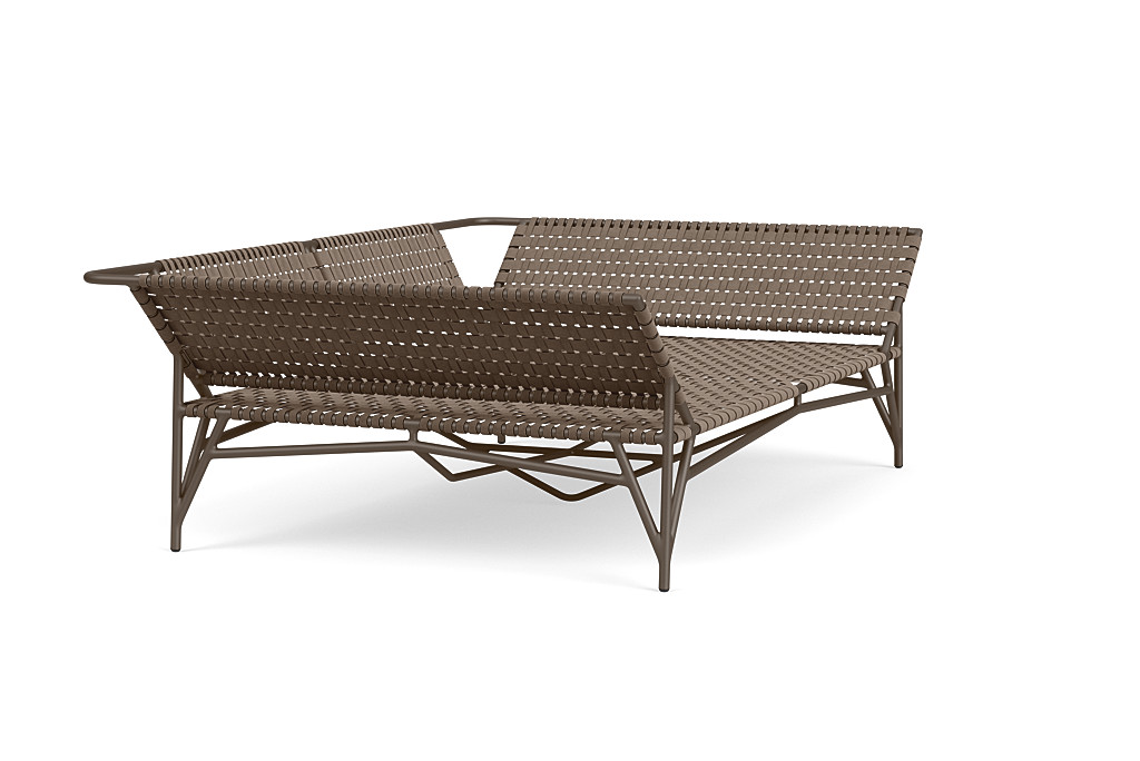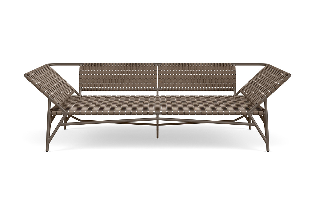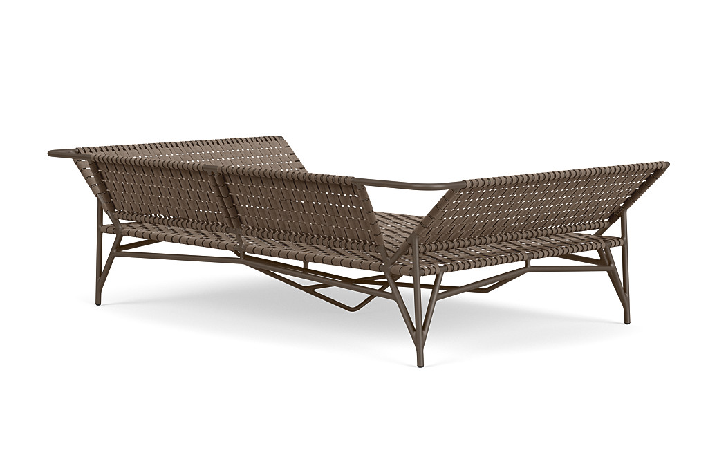 The Stretch Daybed by Richard Frinier reveals a modern take on vintage Brown Jordan strap designs evolving and elevating previous perceptions about classical strap furniture by incorporating elastomeric strap material in two different widths hand-woven together to achieve a refined and comfortable seating surface conforming to a soft-modern frame design evoking a clear sense of balance and design integrity.