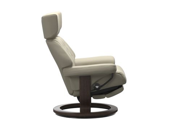 Modern and traditional. That’s what we sought out when designing the Stressless Skyline. It gets its distinctive looks from a retro-inspired, yet modern cushion design. The sitting experience matches any Stressless, and looks after your whole body. The comfortable neckrest can be adjusted up to 4 inches to support users with a longer back.