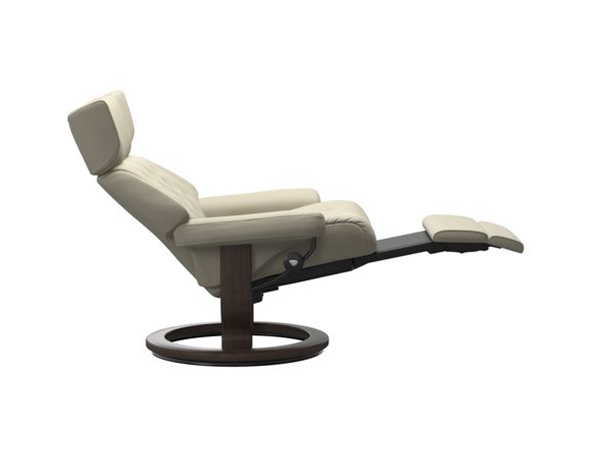 Stressless recliners with Power Leg have a motorized integrated footrest that is elegantly concealed beneath the seat. The back of the recliner automatically follows your movements in the chair. To operate the footrest, use the set of buttons that are discretely placed under the armrest. There is a battery option with magnetic charger attachment for easy access.