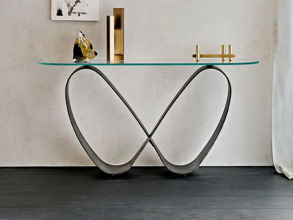 Defined by the pliant, free-flowing laws of nature, the Tefly console table makes an elegant addition to a modern home. The continuous line of the base forms a silhouette like butterfly wings for an ephemeral and sculptural touch. The sleek glass top contrasts the metal base intriguingly and makes this product a seamless fit into any hallway or entryway in need of decoration. Display clocks, lamps, cherished photographs, and other eye-catching decor, and keep personal items like keys handy for easy access while you head out the door