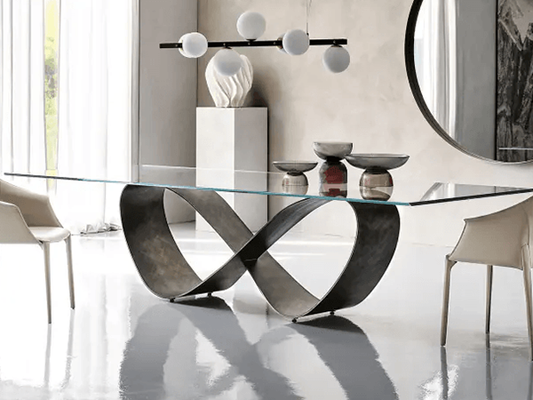Aptly named, the Tefly dining table features a butterfly-shaped base that brings a touch of nature inside. The base looks like it belongs in a museum, adding a sculptural style to the dining room, all while offering durability and support. With a combination of angles and eye-catching curves, it provides a bold, geometric look that stands out in style. The spacious glass top fits many people with ease, and even though it looks fragile, it holds items with ease. Thanks to the contrasting finishes on the top and base, it creates a one-of-a-kind finished product.