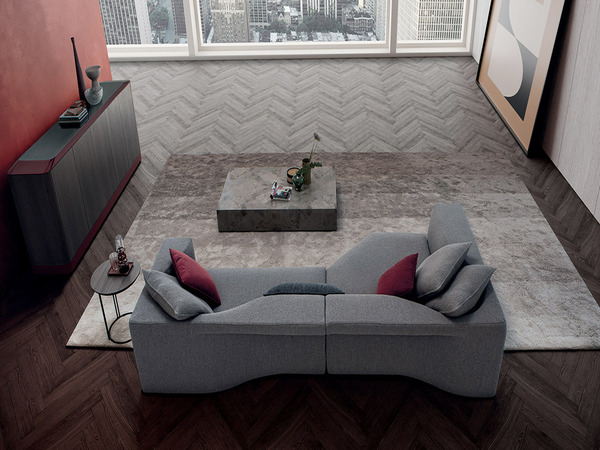 Telope Sag was born from a sign that becomes shape, like a ribbon that is knotted. An all-round collection: the backrest comes to life from an oval-shaped armrest. Soft and captivating, welcoming and comfortable lines give a very soft and creative image. The grandeur of the padding harmonises with the lightness of the metal base which embellishes the project. The collection includes the sofa, the pouf, the armchair, both in the fixed version and with swivel base, chair and stool.