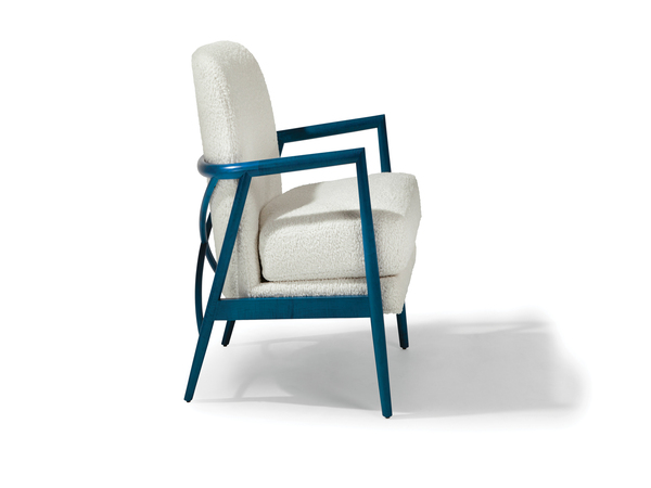 Tex Color boasts crisp, welt detailing along the outside back and seat platforms. Steam-bent solid wood components and precision joinery define its craftsman quality and structural strength. With a built-in lumbar support and loose poly blend down seat, Tex Color brings lounging comfort to any setting. The curvaceous, exposed maple frame is available in any of our TC wood finishes on maple. Select from hundreds of in-house curated fabrics and leathers for upholstery or provide COM.