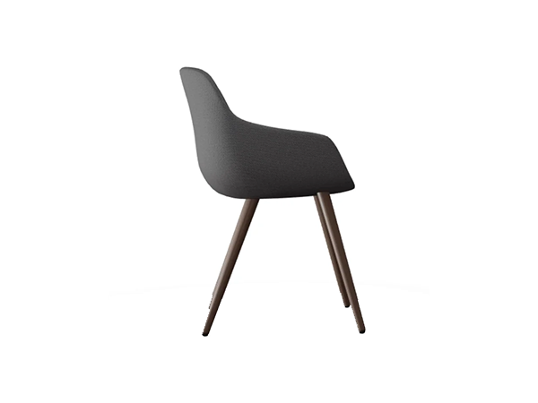 This chair is a part dining chair, part easy chair, suitable for all dimensions of conviviality. The upholstered seat is as comfortable as an armchair, but the 4-legged wooden frame gives it a more streamlined design, allowing it to be used as a dining chair.
