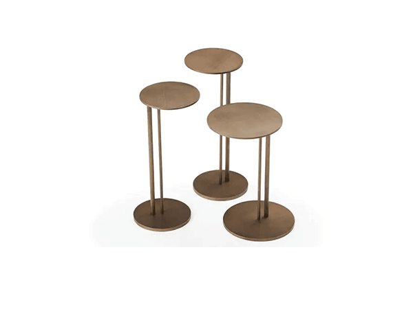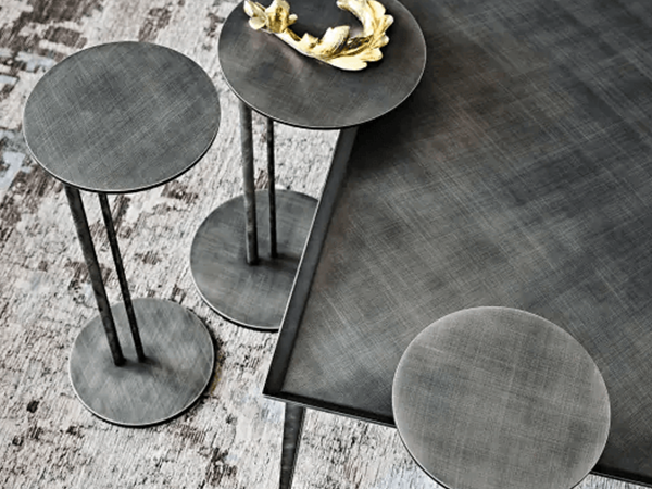 The Tinge end table adds a sophisticated style to a modern home. The edgy silhouette features two metal support beams in between the round top and base for an eye-catching touch. Whether placed alone or in stunning groupings, it looks lovely in a living room and fits in well with the rest of the contemporary furnishings. Thanks to the use of the best quality materials, it is sustainable for years to come.
