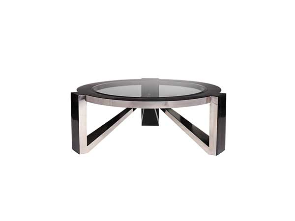 This cocktail table is a real eye-catcher! The combination of black fossil stone and stainless steel are a knock-out. The lay-in glass allows family and friends the chance to see the interesting way the three legs meet. Architecture for the home and for lovers of design.