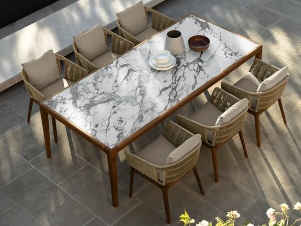 The use of fine materials, such as the wood in the base, and an accurate fabrics’ selection convey to the entire collection an elegant and sophisticated appeal. The rope plays the lead role in this collection and is intertwined with the armrests and backrests of every seating element: living armchairs, fixed and modular sofas and dining armchairs.