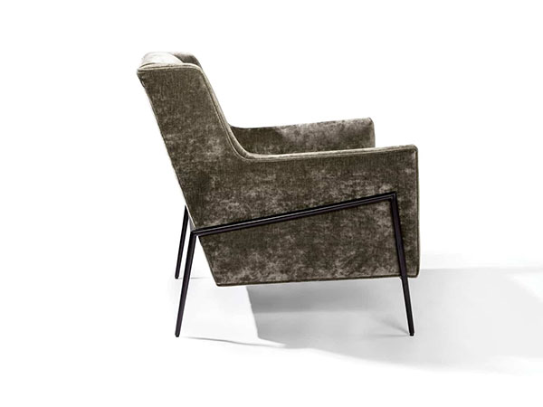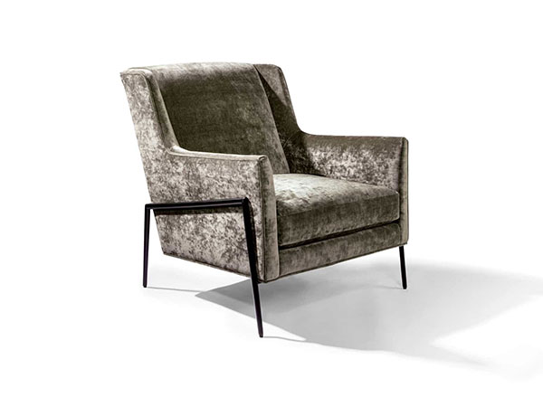 More than just a fashion plate… our Twiggy lounge chair provides trendsetting comfort and head-turning legs. Trim, modern seating matched with “oh-so” elegant legs, Twiggy cuts a stunning profile from all angles. Available with black powder coat, satin brass or polished stainless steel legs, Twiggy is a versatile player, comfortable in modern to transitional room settings. Choose any of our in-house curated fabrics of leathers for upholstery or provide COM.