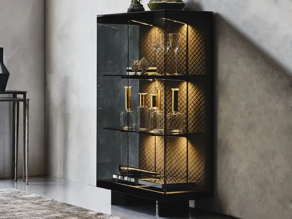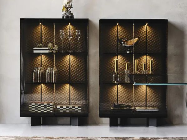 Display your fine china and glassware in an elegant fashion with the help of the Utique C cupboard. The simple, rectangular structure features sophisticated tufted stitching inside the three-shelf interior that creates a textured diamond pattern. With interior lighting, it highlights all of the contents and makes it stand out in style. Each shelf level is sturdy and durable, holding items with ease, and the spacious top offers more decor opportunities. Thanks to fine, Italian craftsmanship and the use of the best materials, this cupboard will be part of your modern dining room decor for years to come.