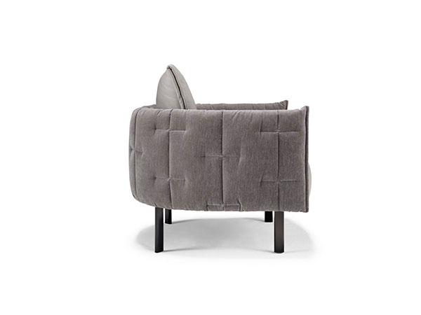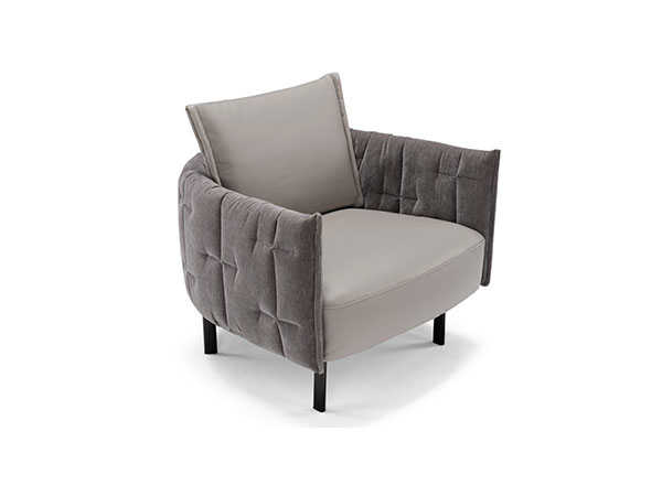 With its statement wrap-around seat, upholstered in elegant platinum grey velvet with a quilted pattern that creates a sophisticated three-dimensional play of light and shadows, the Uzzle tub chair is the epitome of artisan craftsmanship combined with comfort.