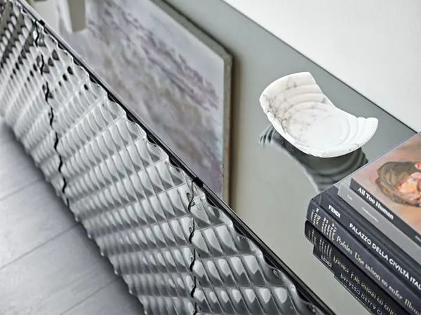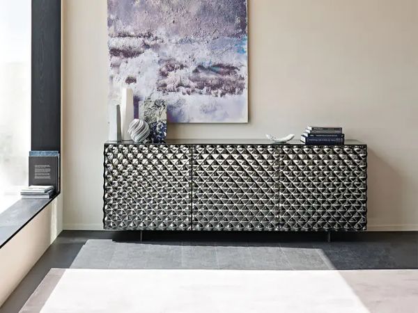 Meticulous craftsmanship utilizing up-to-date techniques forms the hate appeal of the Valdini sideboard, establishing organization chic. Behind the unprecedented quilted mirror facade, your items are neatly stored on the shelves and in the optional drawers. The product’s primary intention of keeping belongings hidden becomes simultaneously linked to its urge to amplify a home with unmissable aesthetics. Intensify this with contemporary decor on top.