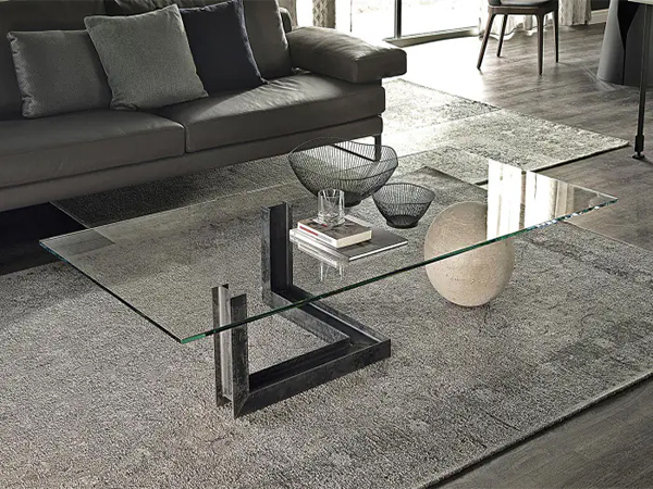 The Vantele coffee table denotes elegance and flexibility and fits in well in a modern living room. With a sculptural base, it features multi-dimensional elements and sharp angles to make it a captivating centerpiece. Thanks to the transparent glass top, it allows for countless decor opportunities and gives the illusion that items are floating.