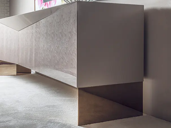 Geometrically inspired and elegant, this sideboard looks lovely in a contemporary home. It is perfect for any area in need of storage and display opportunities, thanks to the spacious compartments, drawer, and top. With angled doors and eye-catching geometric shapes, it makes the sideboard stand out beautifully. Contrasting finishes complement one another for an appealing element. By using only the best quality materials, it is sustainable for a long time.