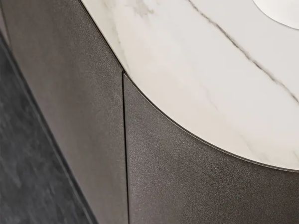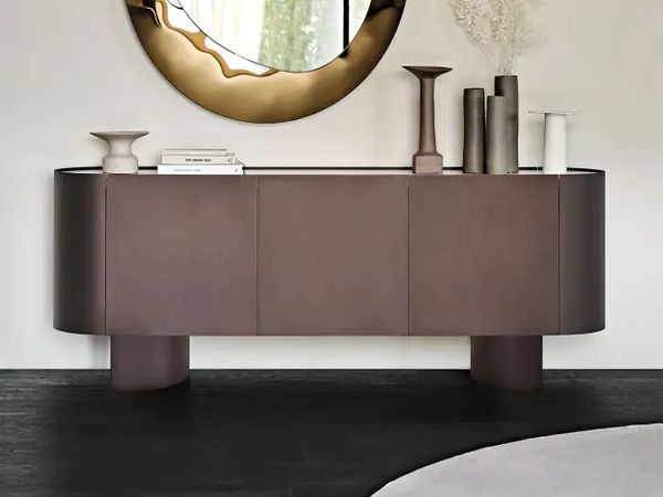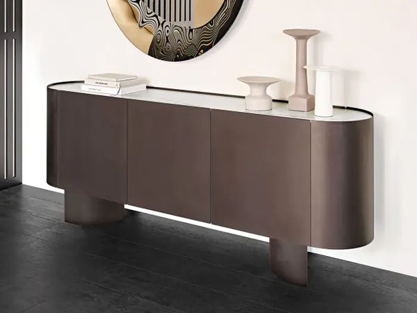 Significantly impact a modern space stylistically and functionally with the Voyes sideboard. Chic and sophisticated, this sideboard is characterized by an oval frame, suave and capable of seamless incorporation into the living room, dining room, and even the hallway or foyer. The feet are similarly rounded but beautifully irregular, facing the other way of this furnishing’s edges. Additional contrast is found in the different finishes, with ceramic on top and a steel-covered frame. Decorate the space on top with any decor, including clocks and pictures, then store dishes and other personal or delicate belongings on the shelves behind the doors.