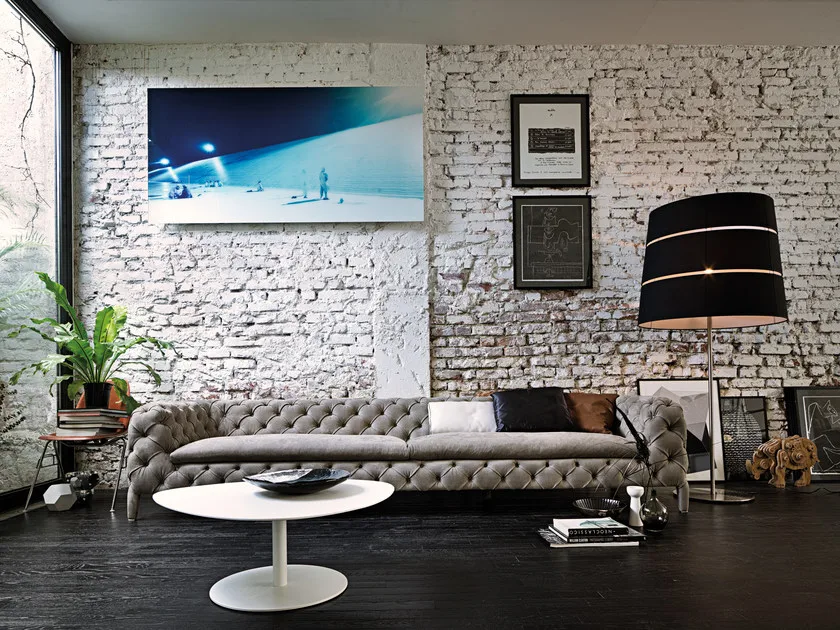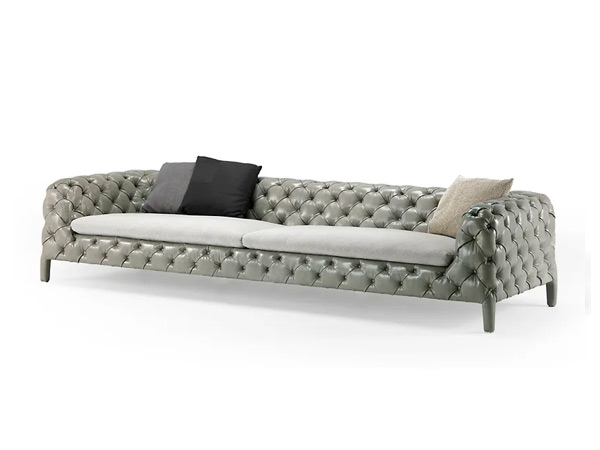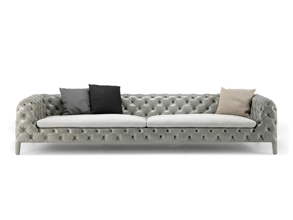 Wind fits in with all kinds of furnishings: perfect in a traditional setting, in a modern setting it stands out like a valuable work of art. Made exclusively by hand with capitonne upholstery, the sofa has a decidedly distinctive feel. It is refined and sophisticated, yet also soft and welcoming, due to the distinctive button buried in the diamond quilting of the padding. Wind has extended its range with an additional, extra-large sofa of 314 cm. Besides, there is a new version in velvet which gives the sofa a silky and sumptuous look.