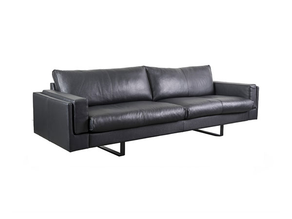 This sofa series features a crisp modern design, with long and low styling and channel-sewn feather/down crowned cushions. Available in select leathers and fabrics, it is available as a matching chair and ottoman as well.