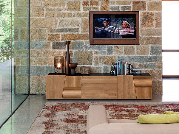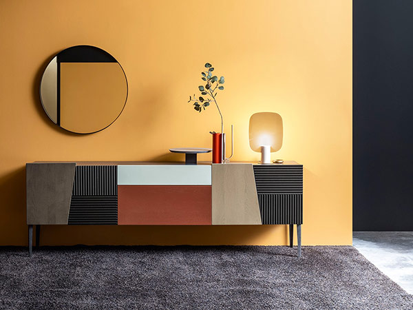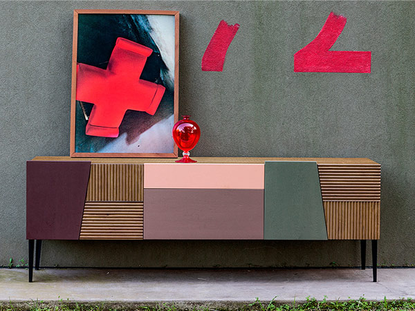Handcrafted in a small factory in Italy, the Zerona sideboard is available in various sizes and wood finishes. The Zerona sideboard with harmonious proportions gets renovated by asymmetric cuts and geometric lines at the front. The alternation of doors and drawers is highlighted by the manufacturing of carved oak and by the different orientation of grains.